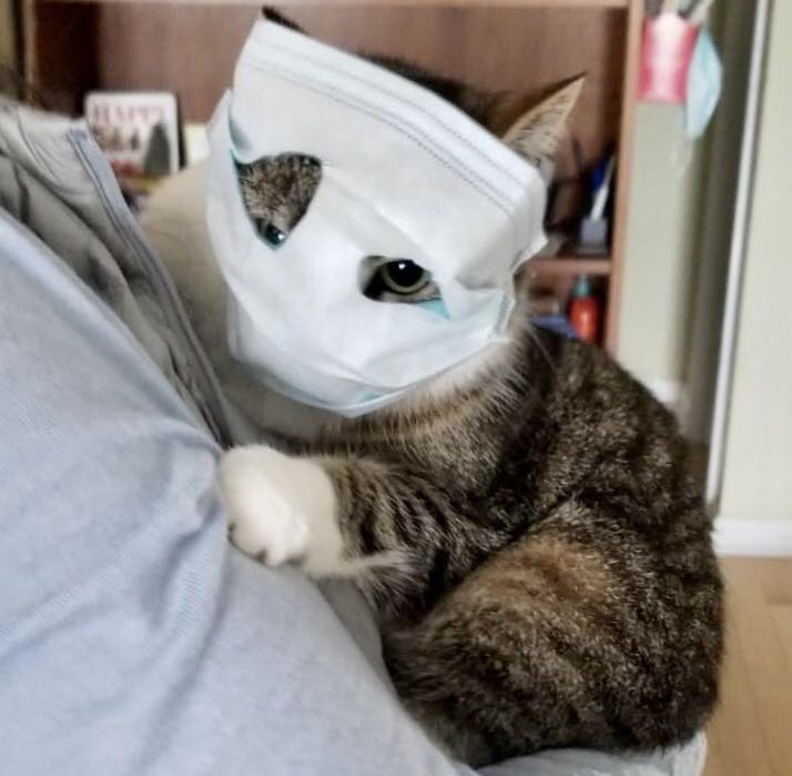 家養的貓和狗,聽話的乖乖地戴上了口罩。那老虎怎麼辦?