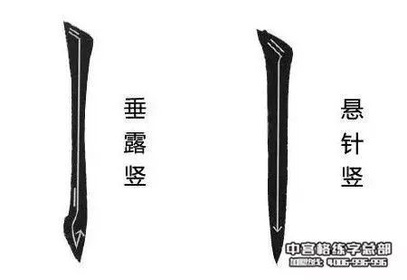 悬针和垂露是长竖的两种不同写法,不是倒挂在针尖上的露珠。悬针竖上粗下细,一气呵成,收尾似倒挂针尖。而垂露竖则上下差不多一般粗细,关键是最后要回锋收笔,出现貌似露珠的形态,但垂而不落。
